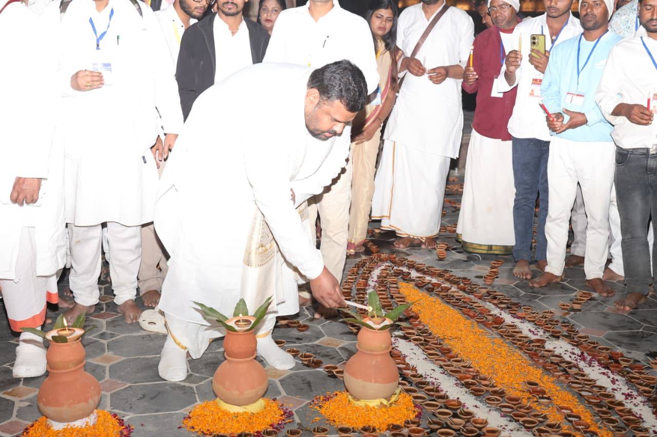 सायं पांच बजे का दृश्य तो और भी अद्भुत था। जब एक लाख दीपों की पंक्तियाँ एक साथ प्रज्वलित हुईं, तो स्वर्वेद महामंदिर धाम अलौकिक प्रकाशदृमंडल में बदल गया। हर दीप अपने भीतर तीन संदेश सँजोए था, गौ – सेवा का प्रकाश. गुरुकुल – संरक्षण की करुणा, राष्ट्र – प्रहरियों के सम्मान का तेज. काशी का आकाश उस क्षण दिव्यतम आलोक से भर उठा। सांस्कृतिक संध्या ने तो वातावरण में भक्ति – रस का अमृत भर दिया, भजनों की मधुर धुन, लोकनृत्य की सहजता, और कत्थक की गरिमा, इन सबने मानो काशी की पारंपरिक संस्कृति को आज और भी जीवंत कर दिया।