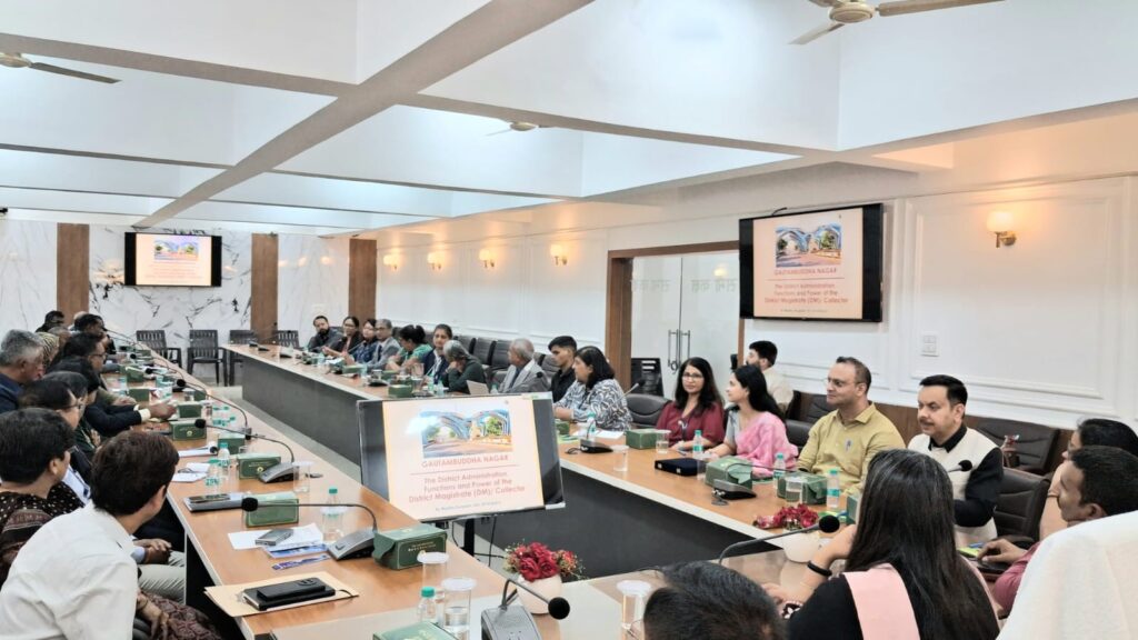 जिलाधिकारी ने अपने संबोधन में बताया कि जिला प्रशासन शासन की योजनाओं को जमीनी स्तर तक पहुंचाने की अहम कड़ी है। उन्होंने राजस्व प्रशासन, विभागीय समन्वय, आपदा प्रबंधन, चुनावी प्रक्रिया और जनकल्याणकारी योजनाओं के क्रियान्वयन में अपनी भूमिका को विस्तार से समझाया। उन्होंने बताया कि जिले में सदर, दादरी और जेवर तहसील के साथ बिसरख, दादरी और जेवर विकास खंड संचालित हैं, जबकि छह नगर निकाय भी सक्रिय हैं। बहुस्तरीय प्रशासनिक व्यवस्था के तहत विभिन्न पदों के माध्यम से योजनाओं का प्रभावी संचालन किया जाता है।