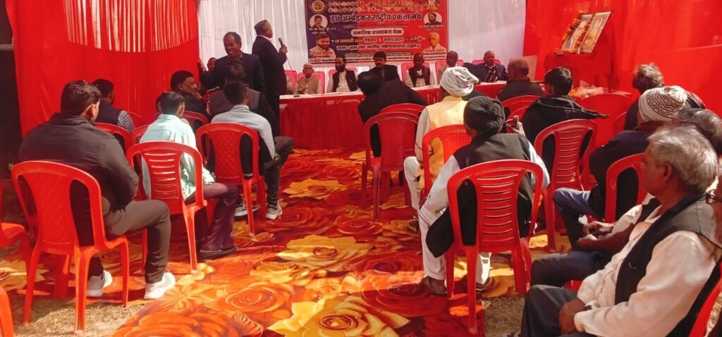 राष्ट्रीय अध्यक्ष भवननाथ पासवान ने कहा कि आज देश बेरोजगारी, महंगाई, शिक्षा और स्वास्थ्य जैसी गंभीर समस्याओं से जूझ रहा है, लेकिन इन मुद्दों से ध्यान भटकाने का काम किया जा रहा है। उन्होंने कहा कि डॉ. आंबेडकर राष्ट्रीय एकता मंच का स्पष्ट उद्देश्य है कि समाज के अंतिम पंक्ति में खड़े व्यक्ति तक न्याय, सम्मान और अधिकार की आवाज पहुंचे। अब समय आ गया है कि समाज चुप रहने के बजाय अपने संवैधानिक अधिकारों के लिए संगठित होकर निर्णायक संघर्ष करे। प्रदेश अध्यक्ष आशा राम सरोज ने कहा कि आज गांव-गांव में शिक्षा की कमी, नशाखोरी, सामाजिक भेदभाव और बेरोजगारी जैसी समस्याएं तेजी से बढ़ रही हैं। जब तक समाज जागरूक नहीं होगा, तब तक कोई भी सरकार या व्यवस्था आम आदमी को उसका पूरा अधिकार नहीं दिला सकती। उन्होंने युवाओं से अपील की कि वे नशा, भटकाव और नकारात्मक सोच से दूर रहकर शिक्षा और संगठन को अपनी ताकत बनाएं और बाबा साहब के सपनों का समतामूलक समाज बनाने में अपनी भूमिका निभाएं।