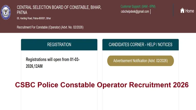 Bihar Police Bharti 2026: CSBC पुलिस कॉन्स्टेबल ऑपरेटर भर्ती के लिए नोटिफिकेशन जारी, आवेदन 1 मार्च से होंगे स्टार्ट