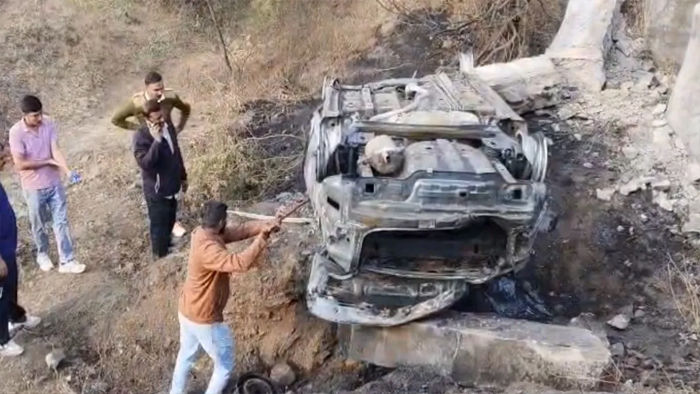 8 फीट ऊंचाई से पुल के नीचे गिरी कार,1 बच्चा समेत 3 लोग जिंदा जले