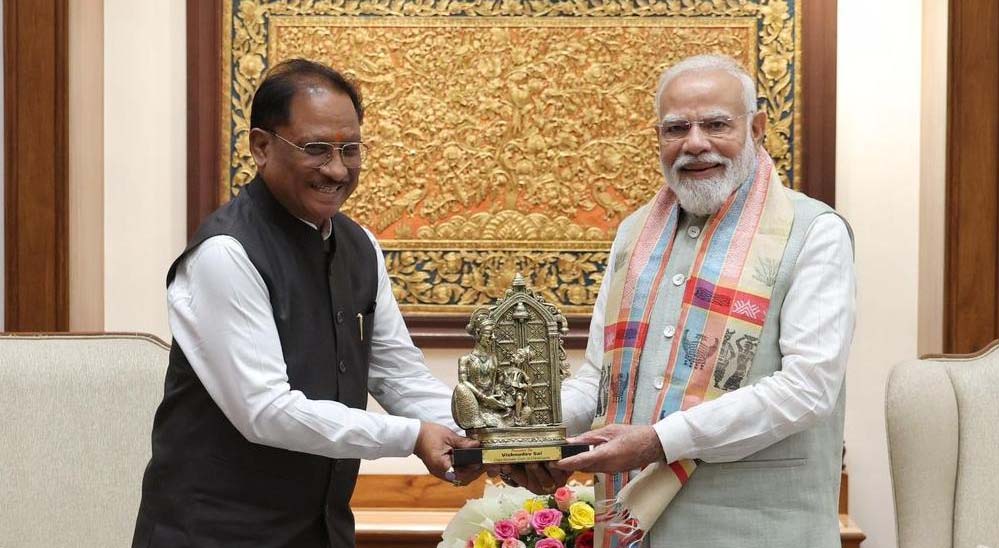 रायपुर: मुख्यमंत्री विष्णुदेव साय ने नई दिल्ली में प्रधानमंत्री नरेंद्र मोदी से मुलाकात के दौरान छत्तीसगढ़ की समृद्ध जनजातीय परंपरा और सांस्कृतिक पहचान को दर्शाती बेल मेटल से निर्मित ‘माता कौशल्या के राम’ की अद्वितीय कलाकृति भेंट की।