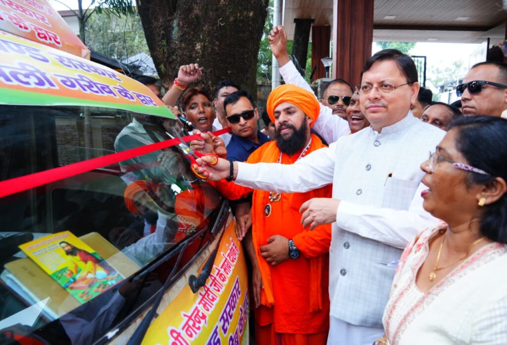 देहरादून: मुख्यमंत्री श्री पुष्कर सिंह धामी ने सोमवार को मुख्यमंत्री कैंप कार्यालय से डॉ० भीमराव अम्बेडकर समाज कल्याण बहुउद्देशीय शिविर रथ को हरी झंडी दिखाकर रवाना किया। मुख्यमंत्री ने कहा कि यह रथ 125 दिनों तक राज्य के विभिन्न ग्रामीण क्षेत्रों में 240 बहुउद्देशीय शिविरों के माध्यम से गरीब, जरूरतमंद एवं वंचित वर्ग के लोगों तक केंद्र एवं राज्य सरकार की कल्याणकारी योजनाओं का लाभ पहुँचाएगा।