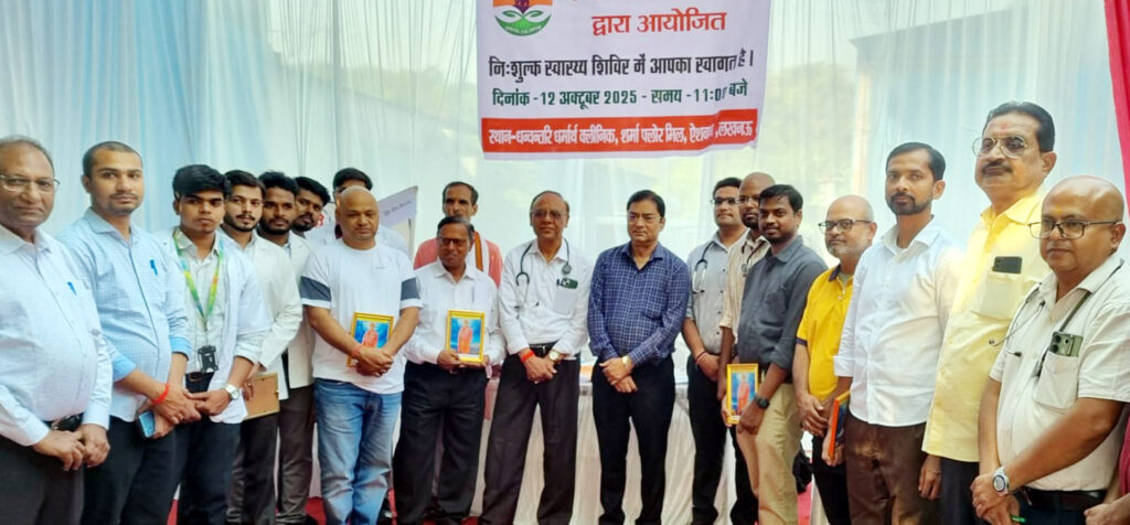लखनऊ : धन्वन्तरि सेवा न्यास द्वारा लखनऊ के ऐशबाग में निःशुल्क चिकित्सा शिविर का आयोजन किया गया, जिसमें किंग जॉर्ज मेडिकल यूनिवर्सिटी, बलरामपुर चिकित्सालय, राजकीय आयुर्वेदिक कॉलेज, लखनऊ कैंसर इंस्टीट्यूट के डॉक्टरों के सहयोग से परामर्श एवं दवाइयां वितरित की गई। शिविर में मेडिसिन,नाक कान गला, श्वास रोग, हड्डी रोड, स्त्री रोग, बाल रोग,कैंसर रोग, दंत रोग से संबंधित रोगियों का परीक्षण किया गया।