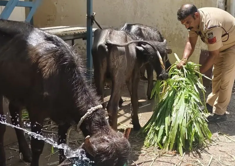 पुलिस को मौके से एक पाडे के कटे हुए चार पैर। 2 जीवित पाडे और 1 पाडी, जिन्हें क्रूरतापूर्वक रस्सियों से बांधकर रखा गया था। मांस तोलने के उपकरण, एक डिजिटल इलेक्ट्रॉनिक कांटा, लोहे की तराजू और विभिन्न बाट। एक धारदार बक्का और एक धारदार लोहे की छुरी और मांस काटने का लकड़ी का ठिया। महाकाल थाना पुलिस ने बताया कि शासन द्वारा मांस की बिक्री पर पूर्ण प्रतिबंध लगाए जाने के बावजूद, आरोपी हाजी मुस्तकीम और उसका भाई वसीम अपने घर के नीचे बने एक कमरे में अवैध रूप से पाडे (मवेशी) काटकर उनका मांस बेच रहे हैं। जब पुलिस ने गवाहों के साथ वहां दबिश दी, तो दोनों आरोपी अपने हथियार (छुरे) मौके पर छोड़कर पीछे के रास्ते से भाग निकलने का प्रयास कर रहे थे, इस दौरान पुलिस ने मौके की वीडियोग्राफी करवाई और वहां से साक्ष्य बरामद किए।