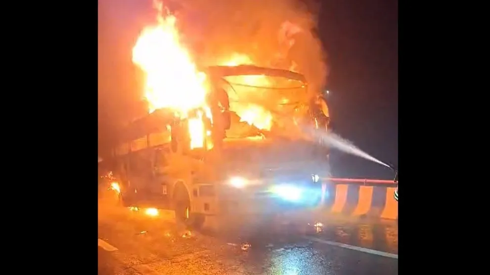 यमुना एक्सप्रेसवे पर चलती बस बनी आग का गोला, चालक की सूझबूझ से टला बड़ा हादसा; सभी यात्री सुरक्षित