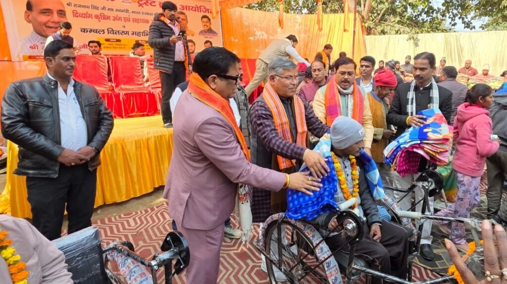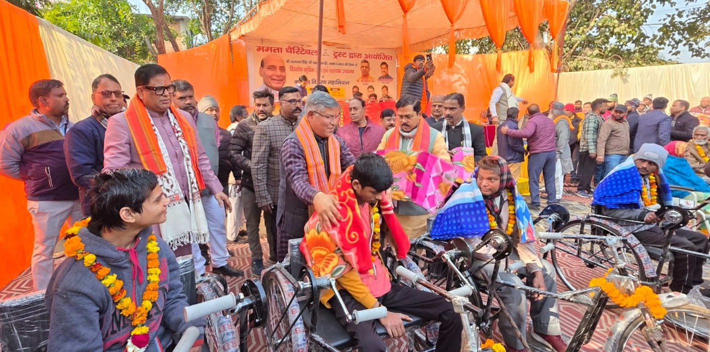लखनऊ : गरीबों एवं असहायों के मदद में जुटी ममता चैरिटेबल ट्रस्ट द्वारा सांसद राजनाथ सिंह की प्रेरणा से राजधानी में ट्राई साइकिल, दिव्यांग उपकरण एवं कंबल वितरण का अनवरत कार्यक्रम जारी है। इसी क्रम में शुक्रवार को ग्वारी, गोमती नगर में दिव्यांग उपकरण एवं कंबल वितरण शिविर का आयोजन किया गया, जिसका शुभारंभ मुख्य अतिथि, प्रान्त प्रचारक कौशल जी द्वारा किया गया। उन्होंने कहा कि संघ के शताब्दी वर्ष पर ममता ट्रस्ट द्वारा सौ अभियान पूरे किए जाएंगे। ममता सर्वश्रेष्ठ संस्था है जो संकट के समय जरूरतमंदों को राशन उपलब्ध कराना हो, पूरे लखनऊ को सैनीटाइजर, मास्क एवं कोविड किट देने का काम रहा हो, किसी गरीब छात्र की मदद करनी हो, या फिर अस्पताल में भर्ती मरीजों को खून उपलब्ध करानी हो, ट्रस्ट ने 24 घंटे की सेवा के साथ जरूरतमंदों के साथ खड़ी रही। भाजपा प्रदेश महामंत्री संजय राय ने कहा कि ममता ट्रस्ट गरीबों के आंसू पोछने का काम कर रही है। अन्य संस्थाओं को इनसे सीख लेनी चाहिए। शिविर में ट्राई साइकिल, सहायक उपकरण, बैसाखी, छड़ी, चश्मा कंबल वितरण में हजारों लाभार्थियों ने लाभ लिया।
