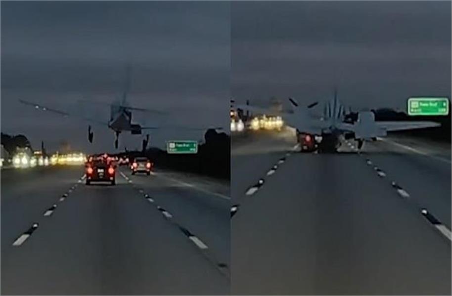 हाईवे पर चलती कार के ऊपर आ गिरा विमान ! वीडियो में देखें खौफनाक मंजर