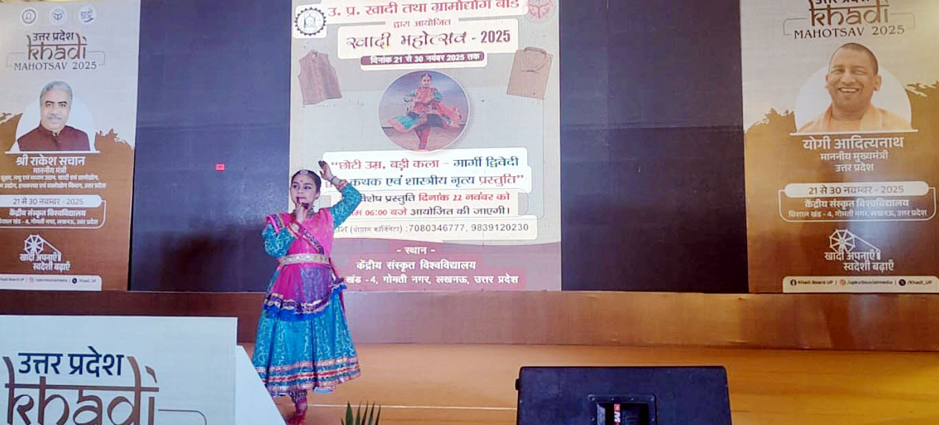 सांस्कृतिक संध्या में कथक एवं शास्त्रीय नृत्य की प्रस्तुति देने वाली नन्ही कलाकार गार्गी द्विवेदी मुख्य आकर्षण रहीं, जिनकी मनमोहक प्रस्तुति ने दर्शकों की खूब सराहना प्राप्त की। बता दें कि कम उम्र में ही गार्गी ने कथक और शास्त्रीय नृत्य के क्षेत्र में नए आयाम स्थापित किए हैं। मुख्य कार्यपालक अधिकारी, खादी तथा ग्रामोद्योग बोर्ड शिशिर ने बताया कि खादी एवं ग्रामोद्योग से जुड़े उद्यमियों को बाजार उपलब्ध कराना, स्वरोजगार को बढ़ावा देना और अधिक इकाइयों की स्थापना को प्रोत्साहित करना बोर्ड का प्रमुख उद्देश्य है। उन्होंने लखनऊवासियों से अपील की कि वे ज्यादा से ज्यादा संख्या में प्रदर्शनी में पहुँचकर विभिन्न जनपदों एवं राज्यों से आए उद्यमियों के उत्पाद खरीदकर उनका उत्साहवर्धन करें।