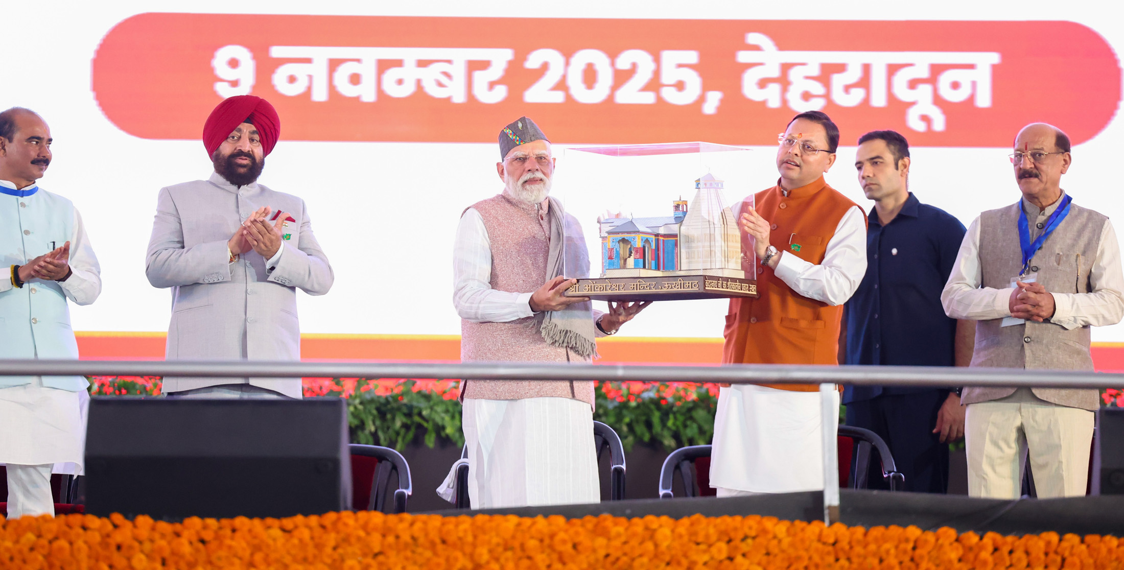 PM participates in a programme marking the Silver Jubilee Celebration of formation of Uttarakhand, at Dehradun, in Uttarakhand on November 09, 2025.