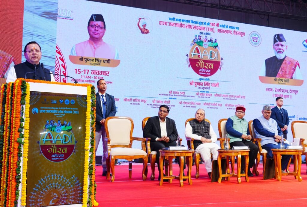 देहरादून: शनिवार को रेंजर ग्राउंड्स, देहरादून में आयोजित आदि गौरव महोत्सव में मुख्यमंत्री श्री पुष्कर सिंह धामी ने बतौर मुख्य अतिथि प्रतिभाग किया। भगवान बिरसा मुंडा जी की जयंती पर आयोजित इस भव्य कार्यक्रम में मुख्यमंत्री ने सभी को जनजातीय गौरव दिवस की शुभकामनाएं दीं और भगवान बिरसा मुंडा जी को कोटि-कोटि नमन किया। मुख्यमंत्री ने कहा कि “आदि गौरव महोत्सव केवल एक कार्यक्रम नहीं, बल्कि जनजातीय समाज की गौरवशाली परंपराओं, वीरता, संस्कृति और आस्था का उत्सव है। ऐसे आयोजन जनजातीय कलाकारों को अपनी प्रतिभा दिखाने का मंच प्रदान करते हैं तथा समाज के अन्य वर्गों को जनजातीय समुदाय की समृद्ध कला और संस्कृति से परिचित कराते हैं।”