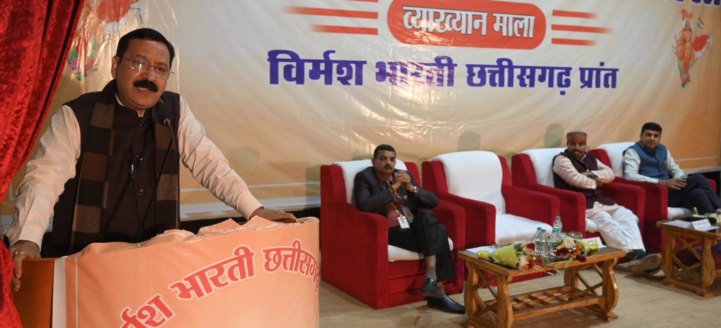 व्याख्यानमाला के मुख्य वक्ता आरएसएस के छत्तीसगढ़ सह प्रांत प्रचारक नारायण नामदेव ने कहा कि वही देश उन्नति करता है, जिस देश के नागरिक सजग और समर्थ होते हैं। आज विचारणीय है कि नागरिक कितने सजग और समर्थ हैं। उन्होंने कहा कि देश पर आक्रांताओं के लगातार आक्रमण के कारण नागरिकों की मानसकिता में परिवर्तन आया, जिससे देश के विकास उन्नति में बाधा पहुंची। हम सब को अपने अपने अंतस में विचार करके आज के नागरिक के आचार विचार, व्यवहार में सकारात्मक परिवर्तन लाना होगा। कार्यक्रम को बिलासपुर जिला पंचायत के सीईओ संदीप अग्रवाल और सिम्स के डीन रमणेश मूर्ति ने भी संबोधित किया।