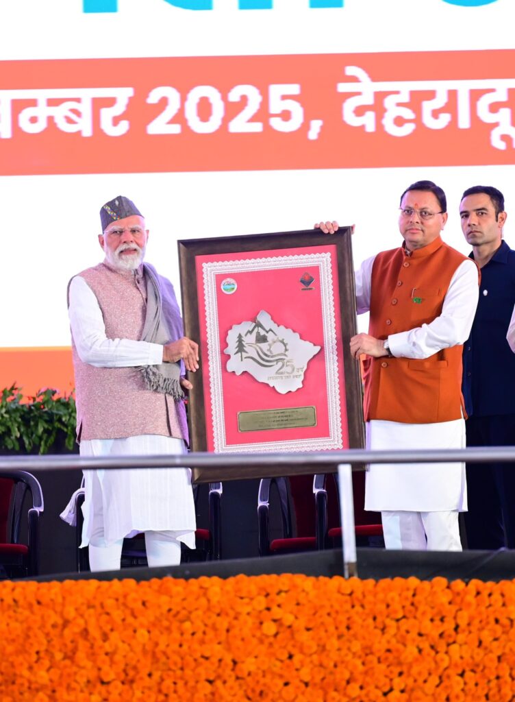 देहरादून: मुख्यमंत्री श्री पुष्कर सिंह धामी ने राज्य स्थापना दिवस रजत जयंती पर्व की बधाई देने के साथ ही प्रधानमंत्री श्री नरेंद्र मोदी जी का स्वागत करते हुए कहा कि ये हम सभी उत्तराखंडवासियों का सौभाग्य है कि इस ऐतिहासिक अवसर पर हमें यशस्वी प्रधानमंत्री जी का सान्निध्य प्राप्त हो रहा है।